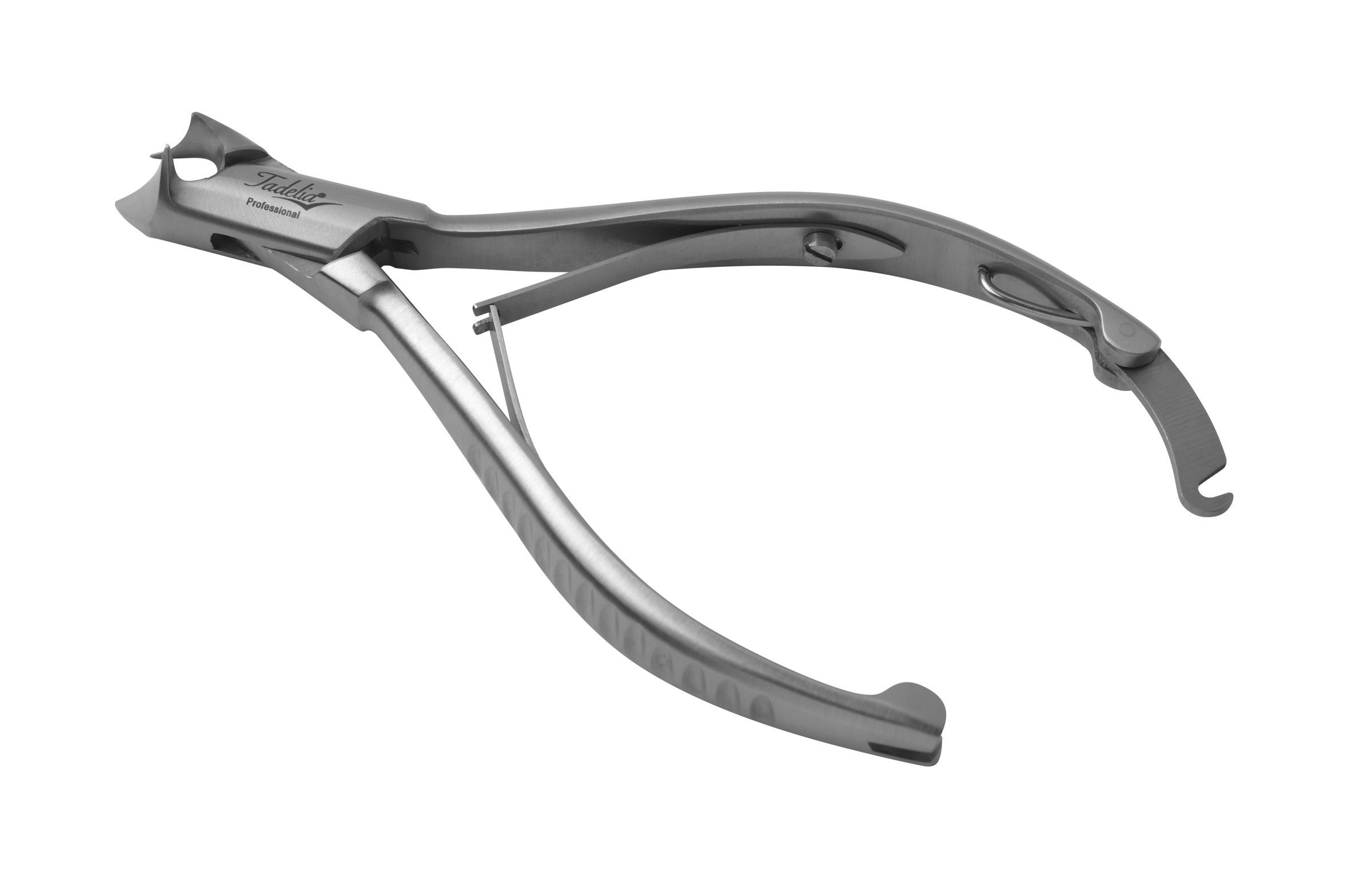 Die Tadelia® Professional Zange ist ein hochwertiges Instrument, das speziell für die Fußpflege von Diabetikern und für podologische Behandlungen entwickelt wurde. Mit einem besonderen Design-Griff, super kurzer Schneide und abgerundeten Spitzen bietet dieses Instrument mehr Sicherheit und Schutz für Diabetiker.