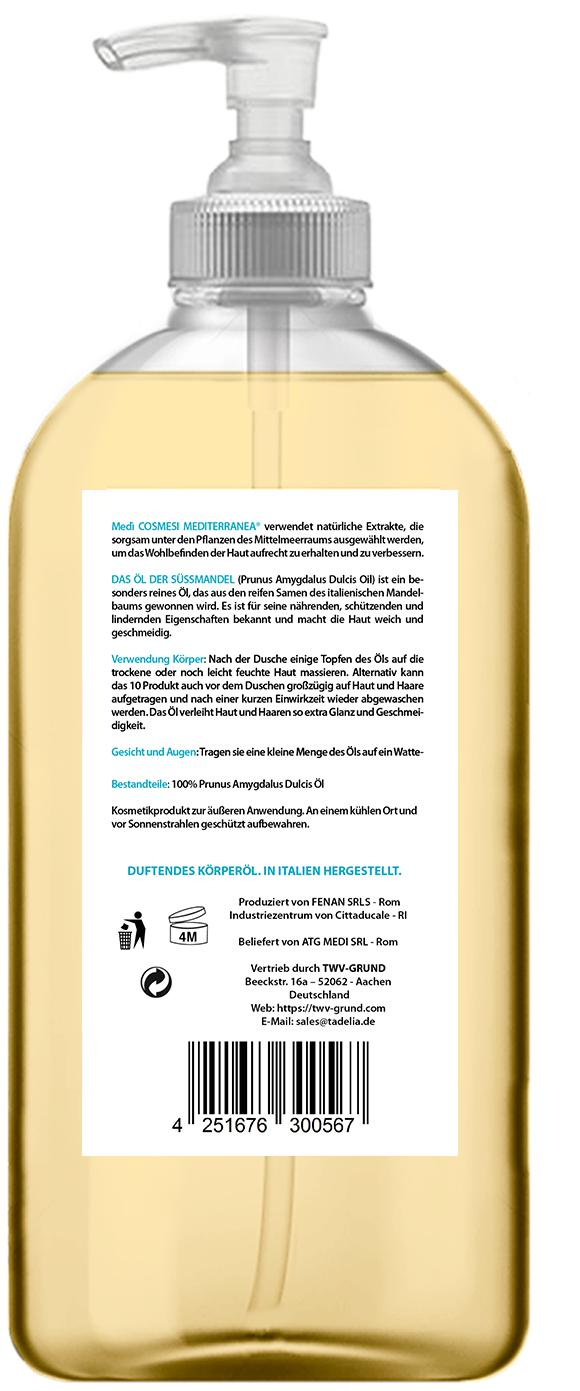 Produktinformationen "Tadelia® Mandel Körperöl | 100% reines Süsses Mandelöl | 500 ml | Vegan"