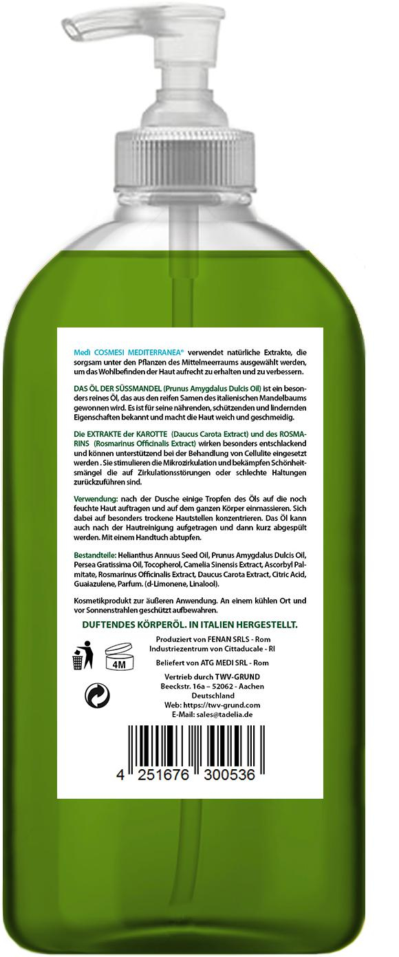 Produktinformationen "Tadelia® Mandel Körperöl mit Karotten und Rosmarin Extrakten 250 ml | Vegan"
