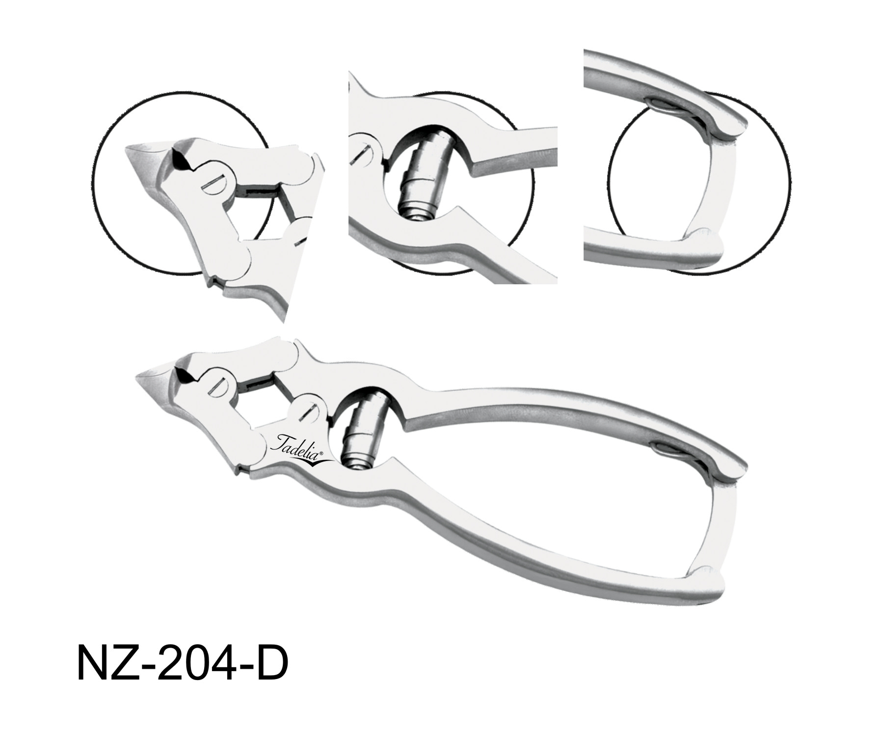 Die Tadelia® Professional Nagelzange ist ein hochwertiges Werkzeug, das speziell für die Anforderungen der Fußpflege entwickelt wurde. Mit ihrer robusten Verarbeitung und präzisen Schneide bietet sie eine optimale Unterstützung bei der Pflege und Behandlung von Nägeln. Das Modell NZ-204-D zeichnet sich durch seine durchdachte Konstruktion und seine benutzerfreundliche Handhabung aus.