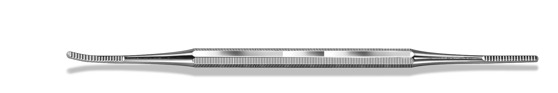 Doppelseitige Eckenfeile zum Feilen und Freilegen stehengebliebener Ecken im Nagelfalz.