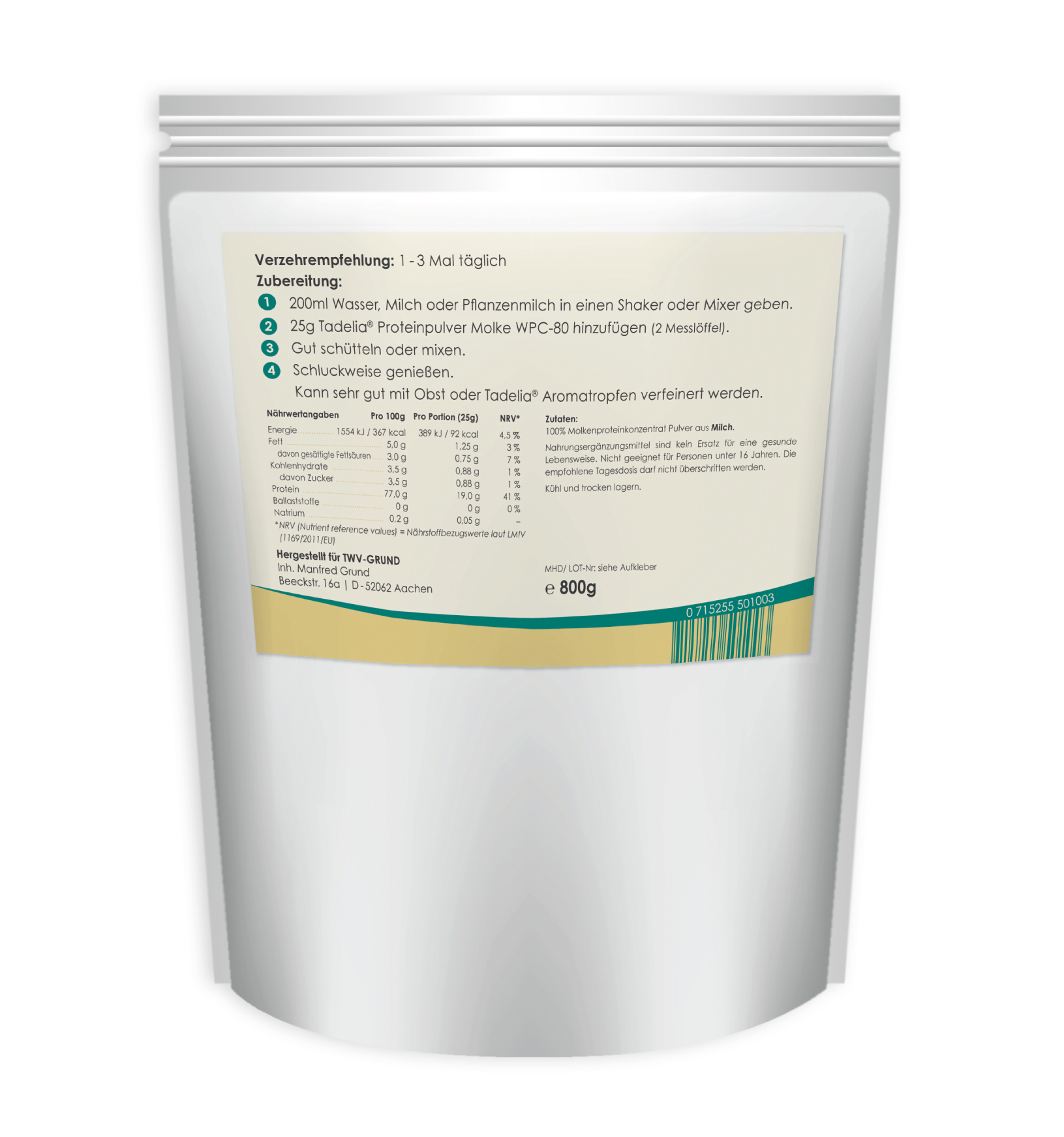 Produktinformationen "Tadelia® Proteinpulver Molke WPC 80 - 800 g | HCG Stoffwechselkur"