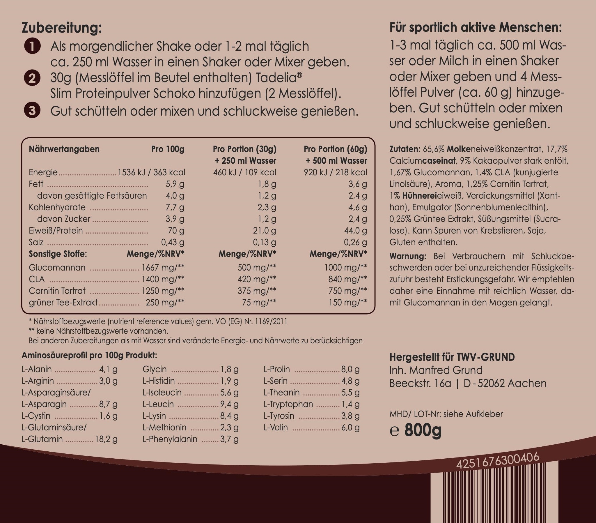 Produktinformationen "✳️ Tadelia® Slim Proteinpulver Schoko 800 g | HCG Stoffwechselkur"