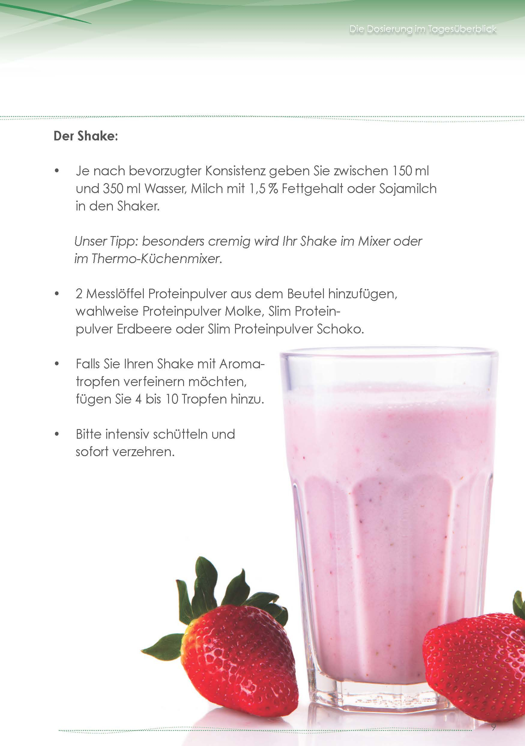 Geben Sie 150-250 ml Wasser oder Milch in einen Shaker (je weniger Flüssigkeit desto dicker der Shake). Dann 2 gehäufte Esslöffel (25 g) der Rezeptur hinzufügen, schütteln und genießen. Siehe Dosierungshinweis auf der nächsten Seite.