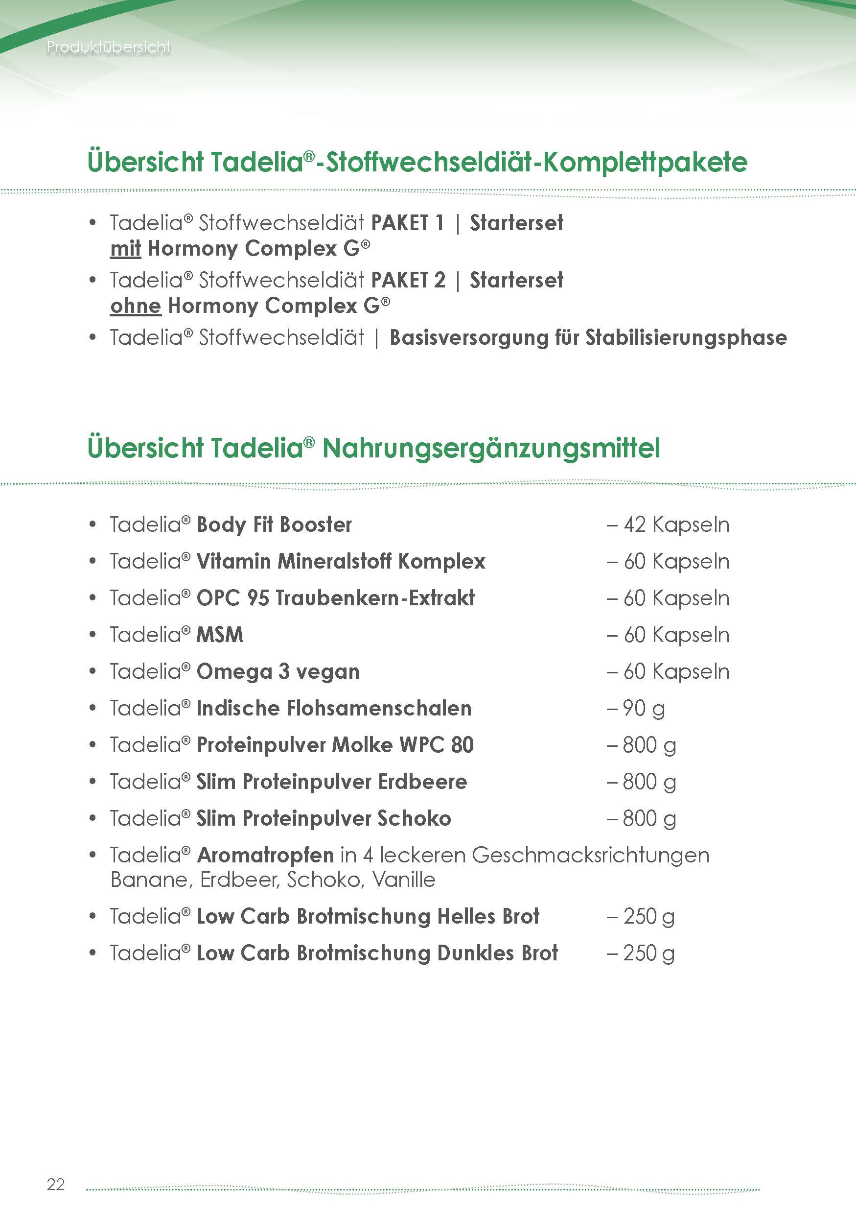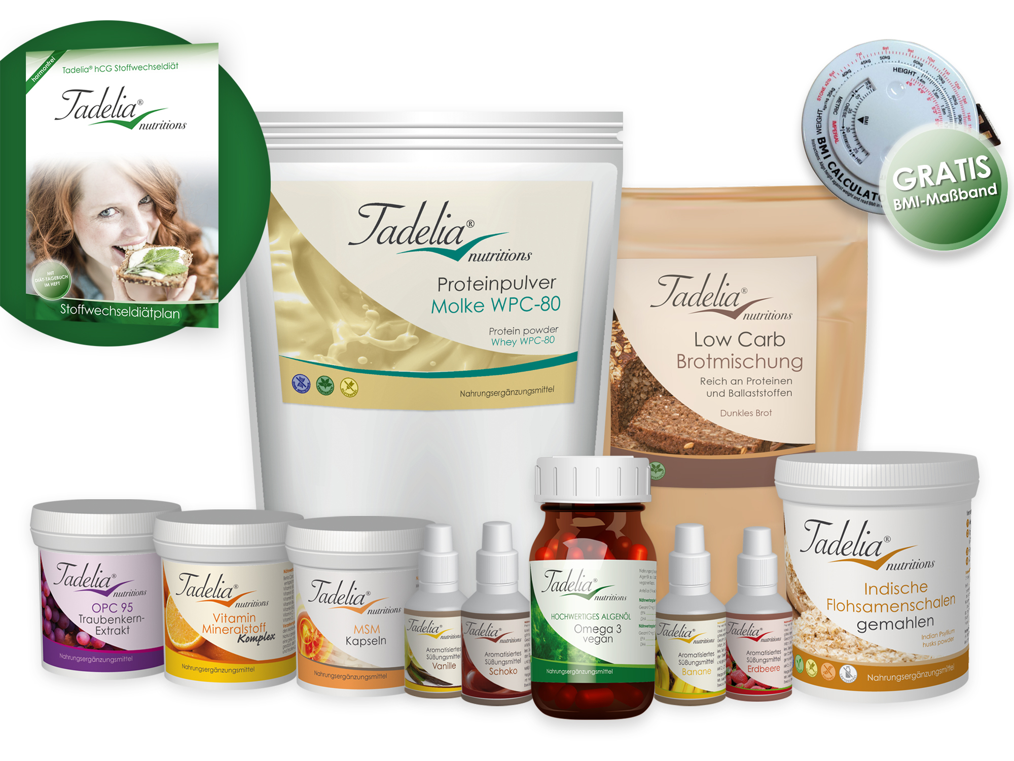 Dieses Stoffwechseldiätpaket beinhaltet die folgenden 11 Produkte inkl. Tadelia® Stoffwechseldiätplan