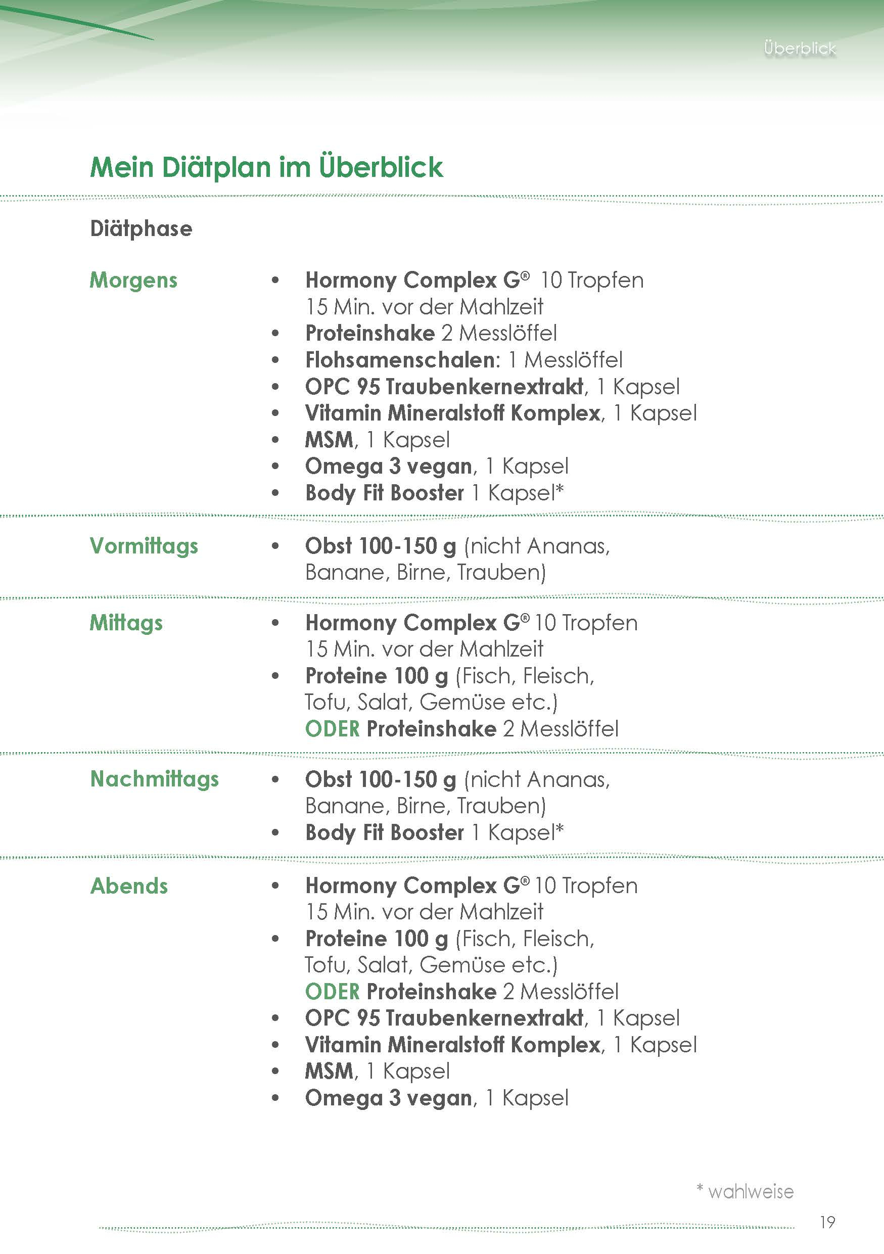 50 ml Glasflasche, inkl. der 36-seitigen Diätbeschreibung (Booklet "Diät Plan")