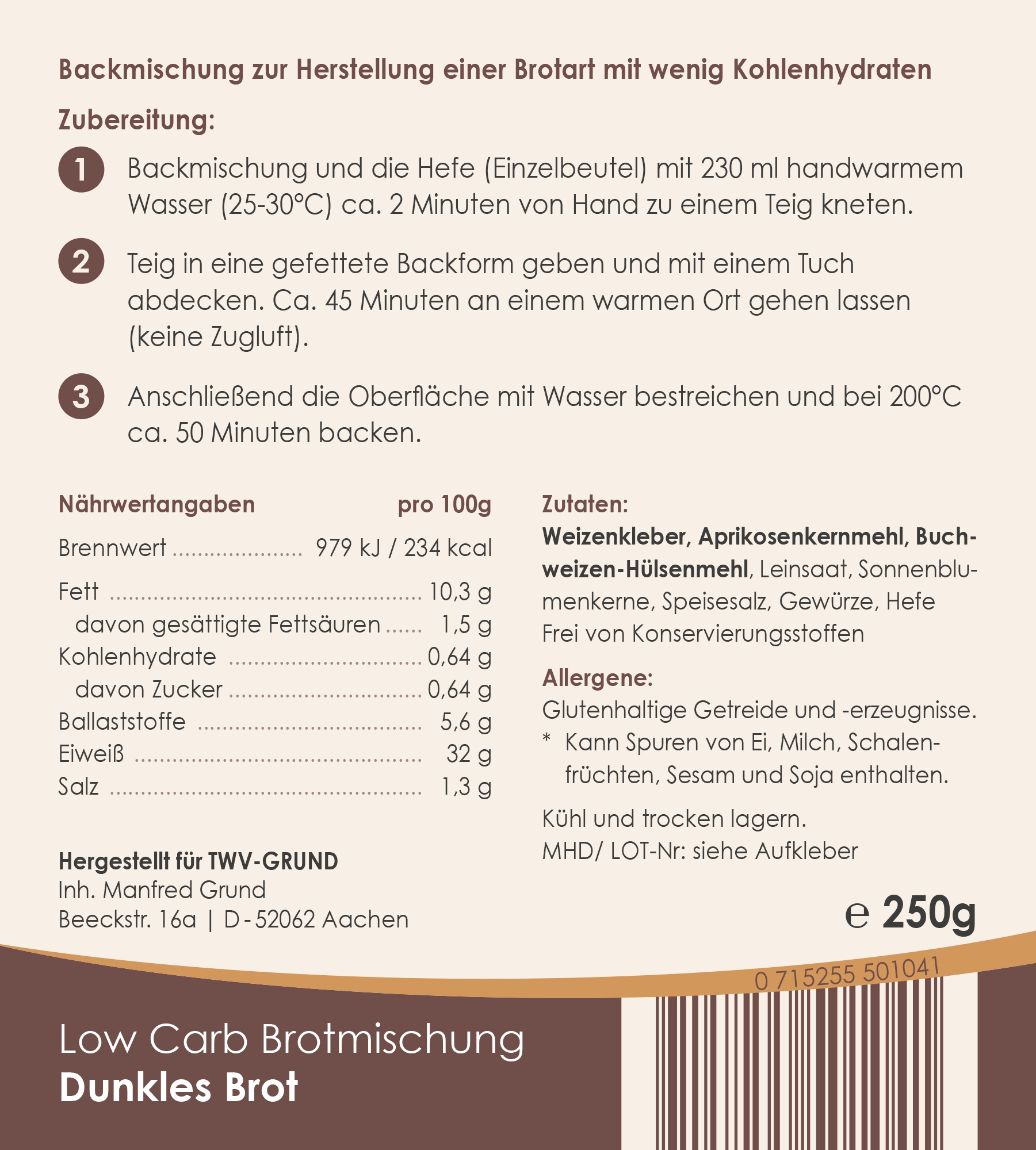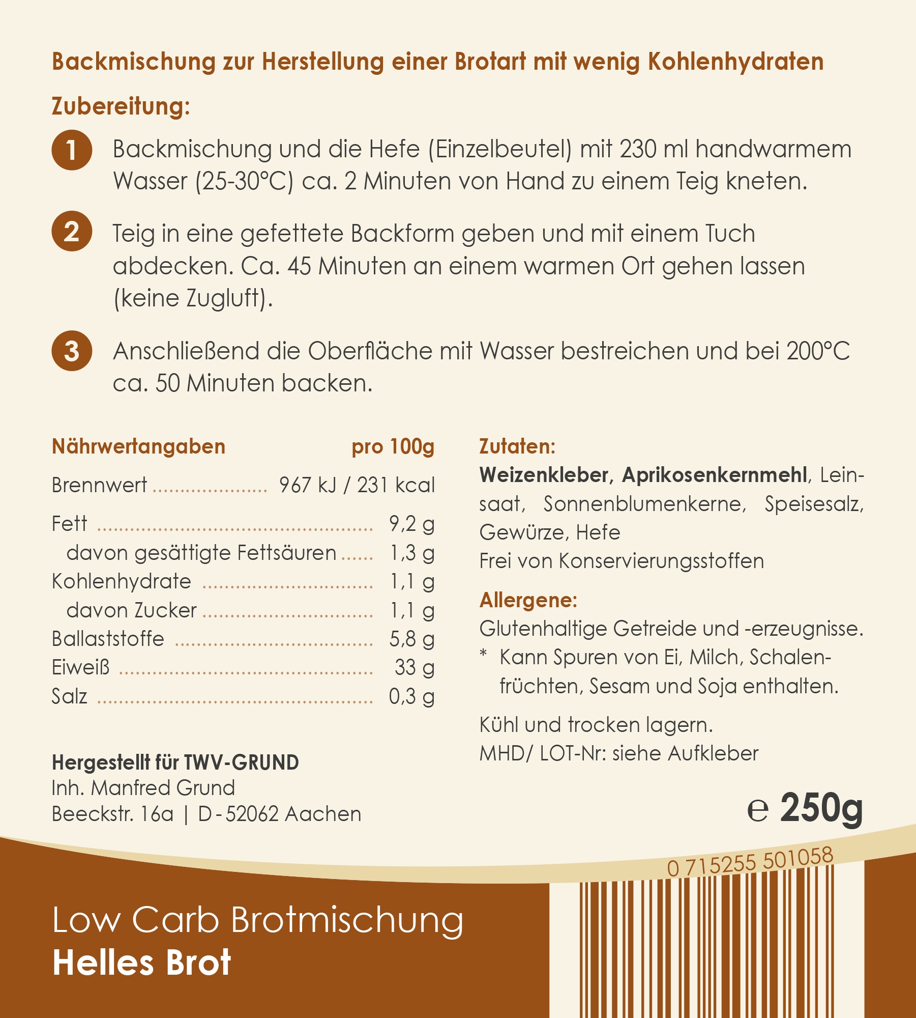 | 1 Beutel Tadelia® Low Carb Brot 250 g | entsprechende Auswahl siehe oben |
