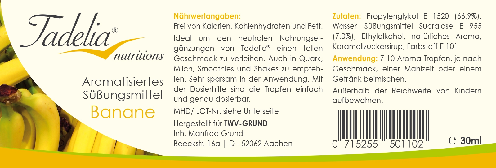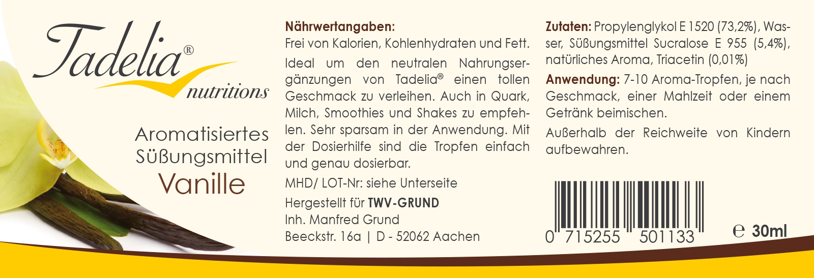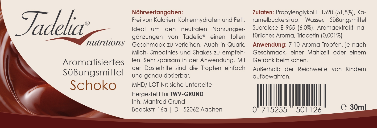 | 4 Flaschen Aromatropfen | Vanille, Banane, Erdbeere, Schokolade | 4x 30 ml |