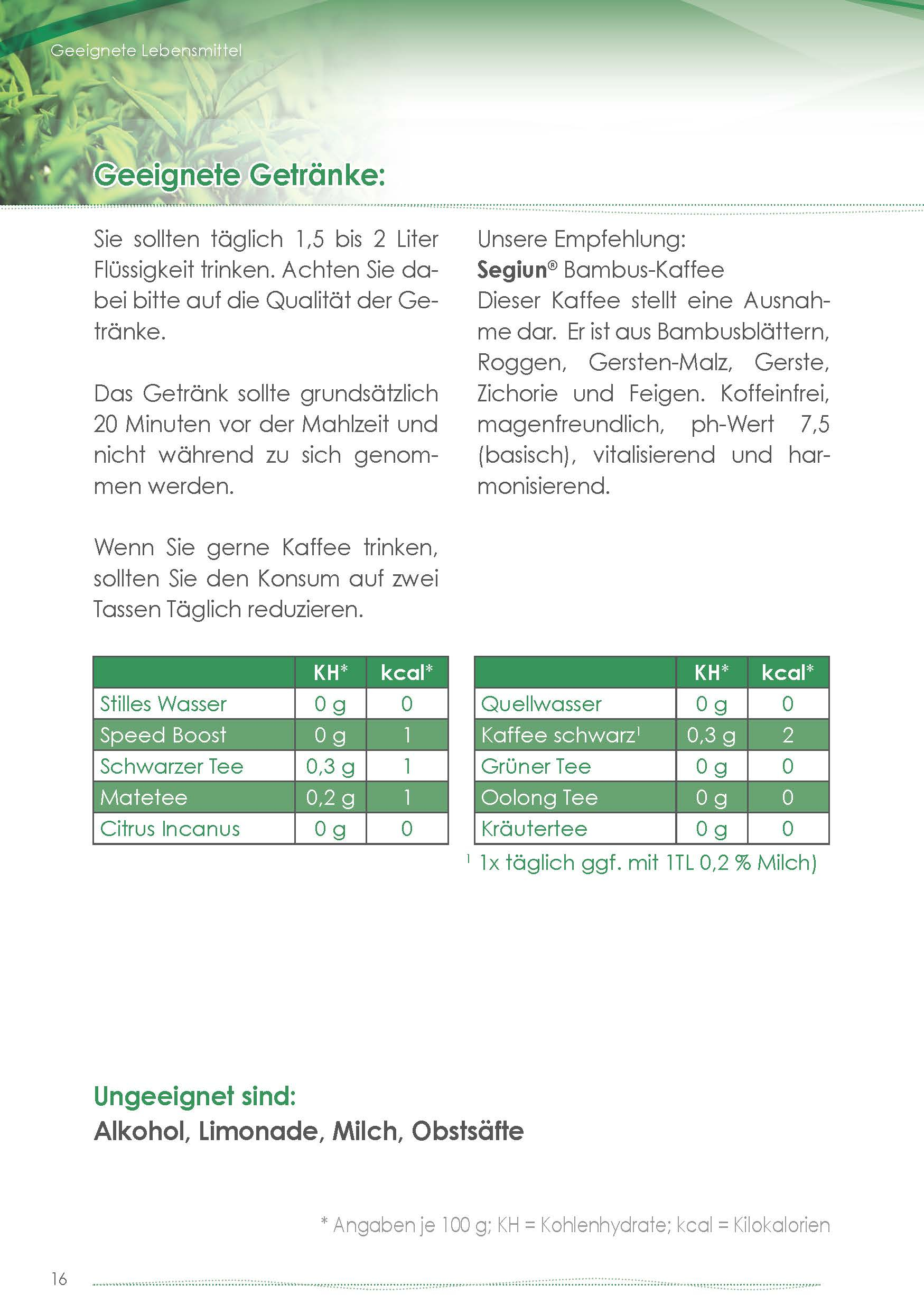 Ergänzend zu diesem Diätprogramm empfählen wir das SEGIUN - Bambus Gewürz- und Suppenkanzentrat.