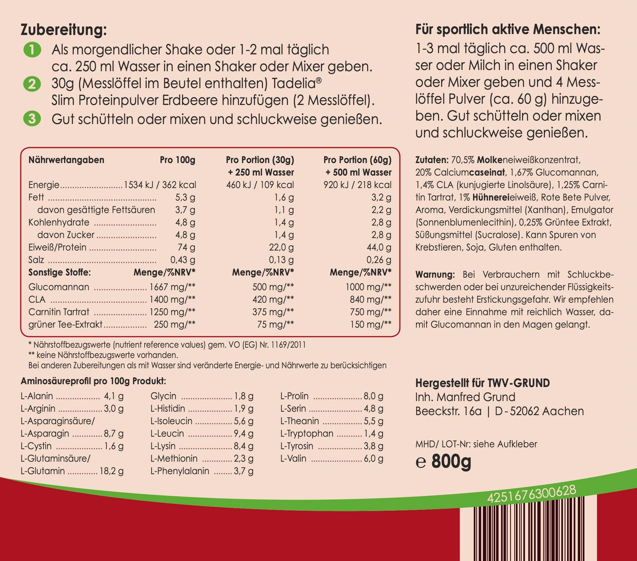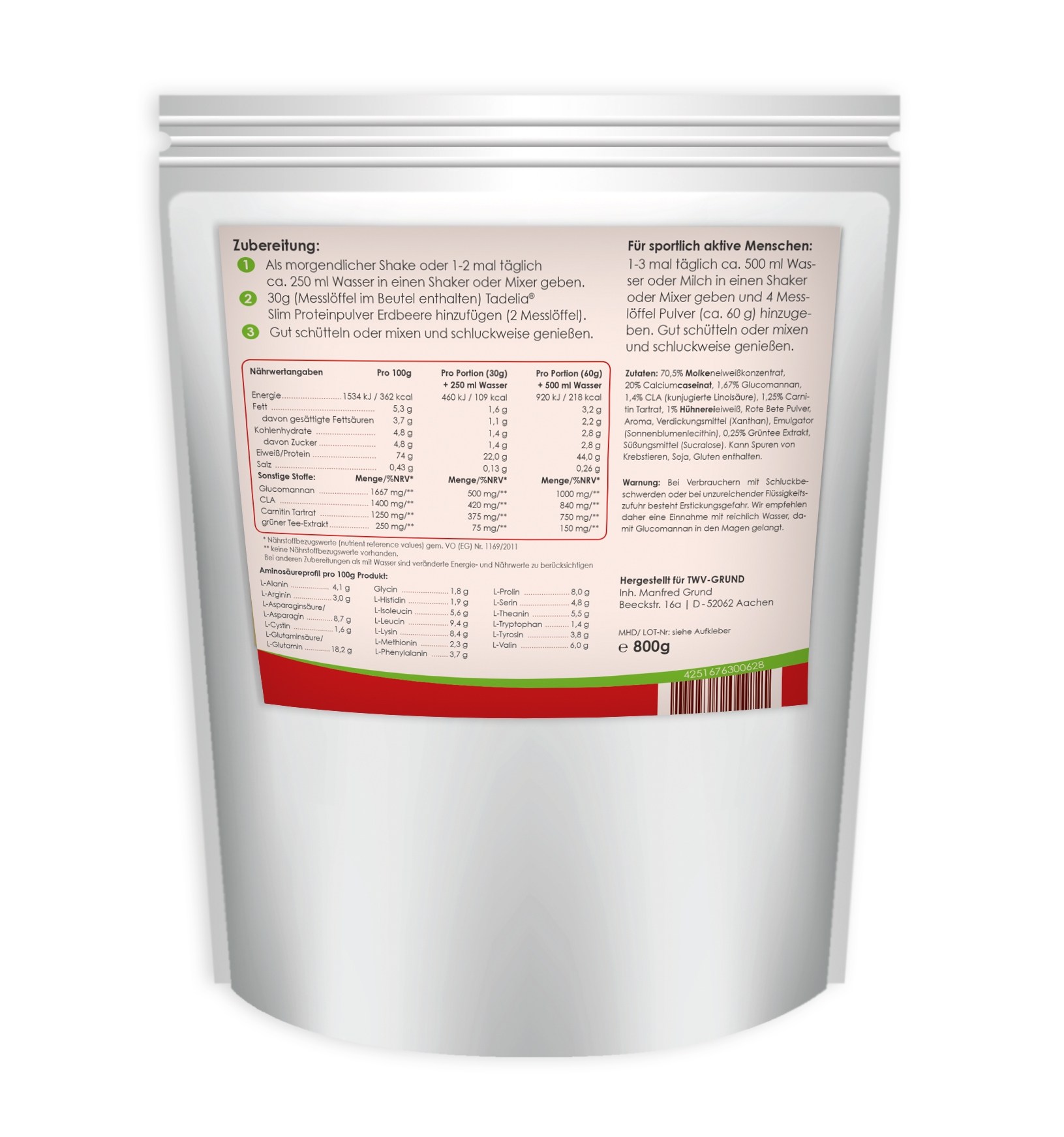 Produktinformationen "✳️ Tadelia® Slim Proteinpulver Erdbeere 800 g | hCG Stoffwechselkur"